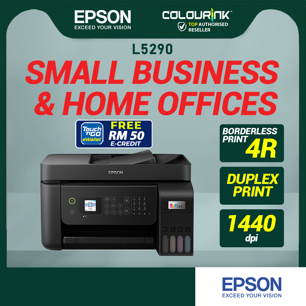 A high-performance workgroup inkjet printer engineered for fast, low-cost and reliable office printing. Equipped with PrecisionCore™ printhead and DURABrite® Ultra pigment ink, it delivers sharp, laser-quality output at up to 24 ppm (34 ppm draft) with no warm-up delays. The WF‑C5290 features automatic two-sided printing, USB/Ethernet/Wi‑Fi/NFC connectivity, a 2.4″ color LCD, and a high-capacity ink pack system—printing up to 10,000 pages mono and 5,000 color without intervention. Its robust paper handling (330-sheet standard, expandable to 830) and advanced security make it ideal for growing small businesses and busy workgroups.